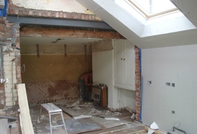 Opening up the existing house and creating a new flowing space was central to the client’s wishes. The existing exterior wall was pinned and a new steel beam fitted to allow an unrestricted junction between the old and new.